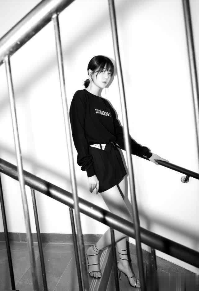 黑色毛衣很衬肤色,白皙且有光泽,少女感满满。虽未露腿,但裤子修身版型展现出笔直腿型,令人心动。